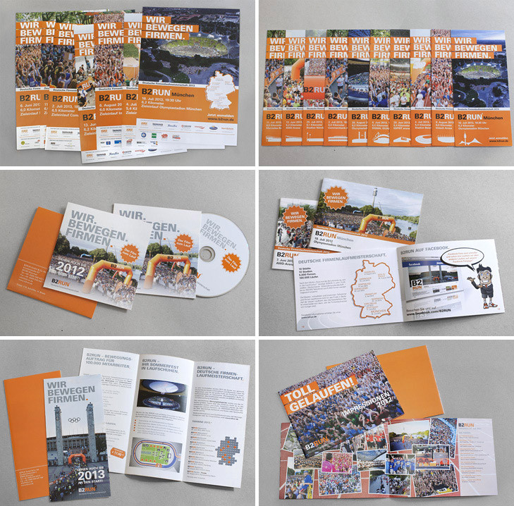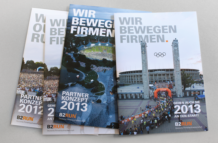 Plakate, Broschüren, Booklets, Flyer, Online Banner, Anzeigen für die Firmenlaufmeisterschaft des B2RUN